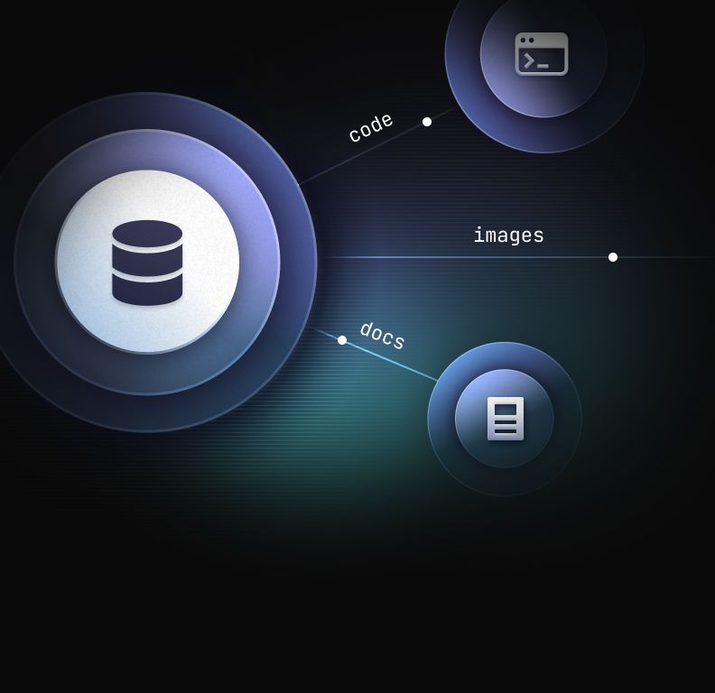 Combine vector search, full-text search, relational data, and SQL analytics in a single system. No glue code between databases.